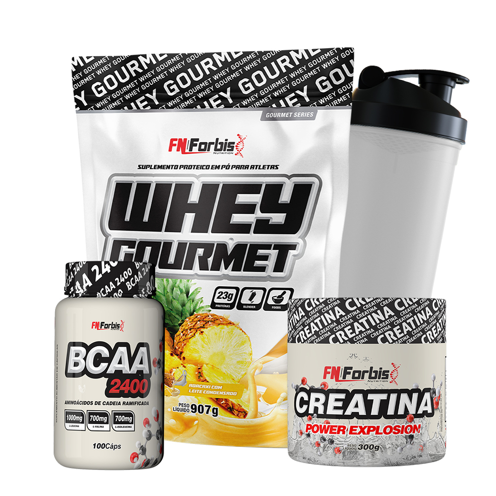 Kit Whey Protein Refil + Creatina 300g + BCAA cáps + Coqueteleira - FN Forbis Nutrition